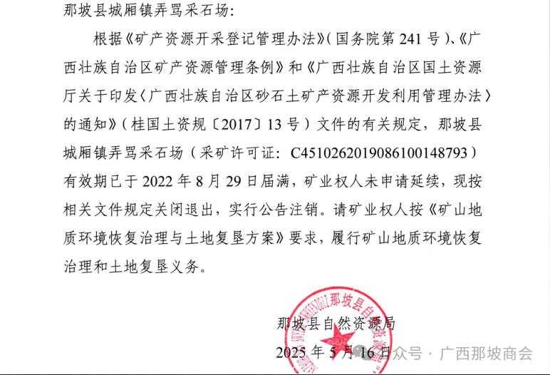 那坡县一采石场采矿许可证被注销,名字取得也不好