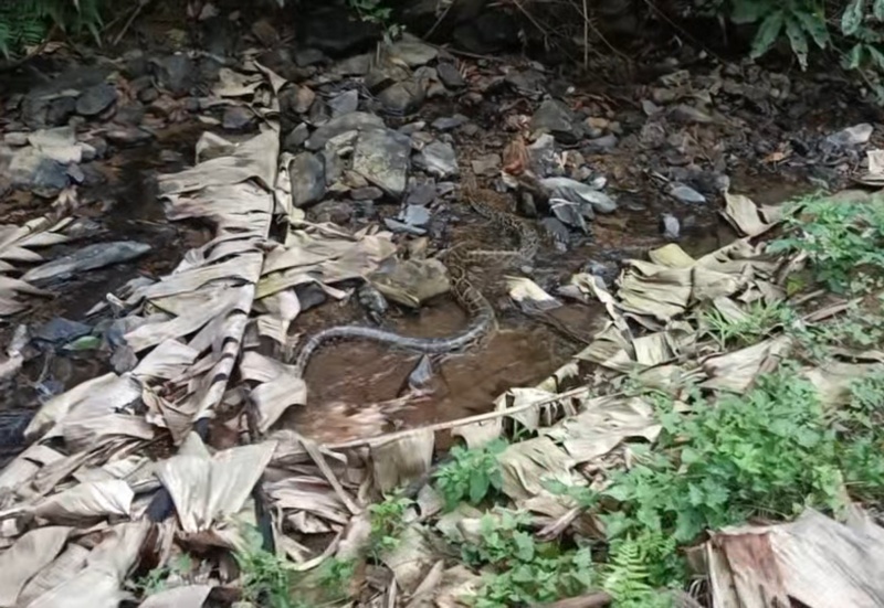 3米长网纹蟒惊现鸭舍中 右江区多部门联合救助科学放生